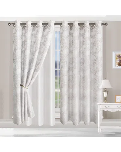 Thermal Insulated Solid Blackout Curtain Panel Set With Grommet Topper In Ivory
