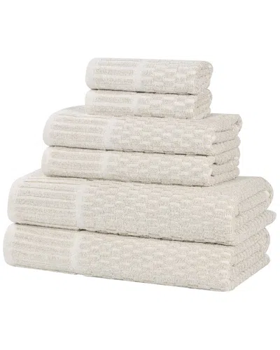 Juno Medium Weight Checkered Border 6pc Towel Set In White