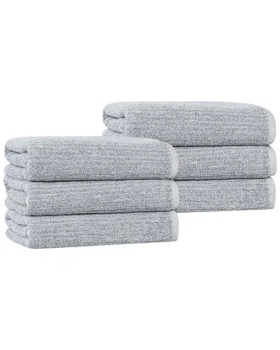 Set Of 6 Destin Medium Weight Solid Ribbed Hand Towels In Blue