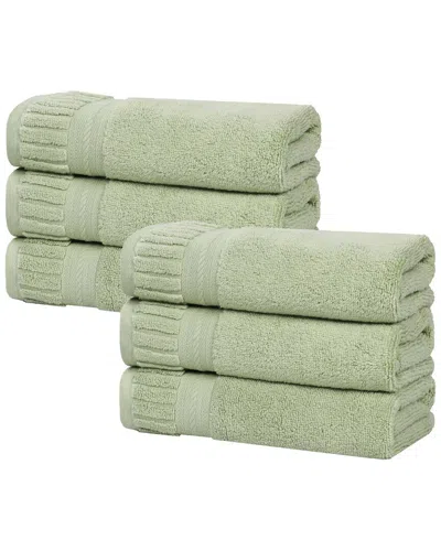 Set Of 6 Venice Zero Twist Cotton Medium Weight Absorbent Hand Towels In Green