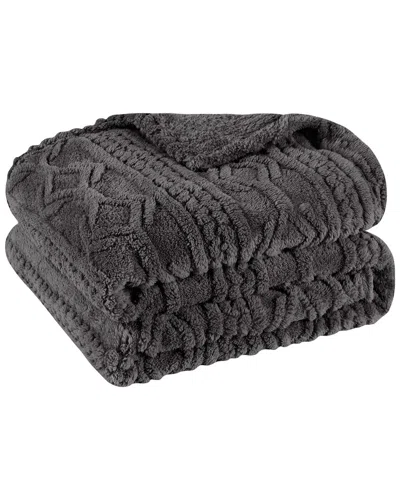 Boho Knit Jacquard Fleece Plush Fluffy Blanket In Gray