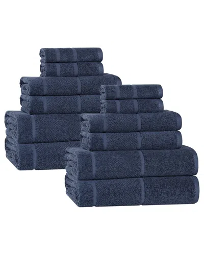 Solid Organic 12pc Breathable Fast Drying Organic Cotton Towel Set In Blue