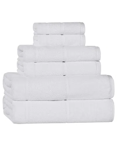 Mile Smart Twist Cotton Medium Weight Solid Broad Border 6pc Towel Set In White