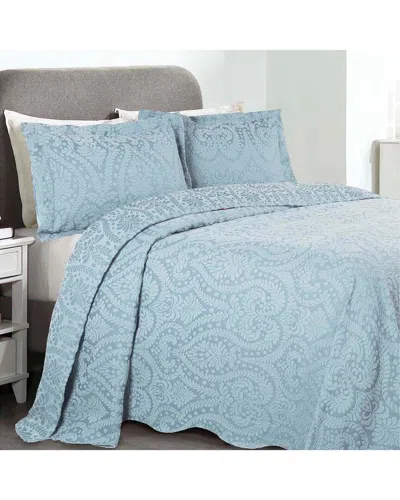 Aspen Jacquard Floral Scalloped Bedspread Set In Blue