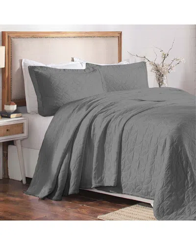 Adalie Vintage Medallion Lightweight Woven Jacquard Oversized Cotton Blend Bedspread Set In Gray