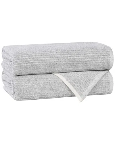 Set Of 2 Destin Medium Weight Solid Ribbed Bath Towels In Silver