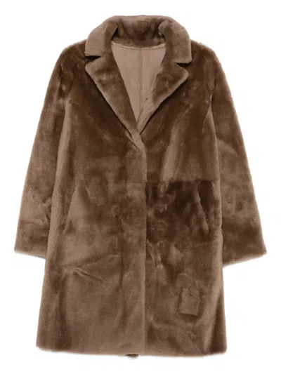 Reversible Shearling Cape Jacket In Cognac In Brown