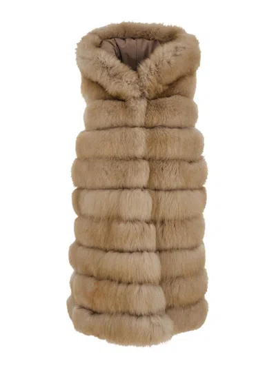 Beige Top With Sleeveless Design In Fur Woman In Neutral