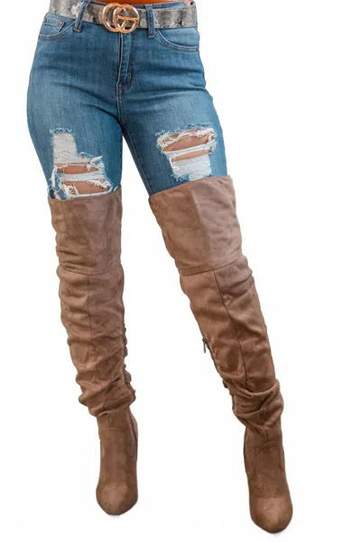 Women's Unmatchable Pointy Slouchy Knee And Thigh High Boots In Taupe In Brown