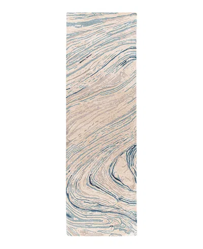 Livorno Lvn-2304 Runner Area Rug, 2'6 X 8' In Denim/white/taupe