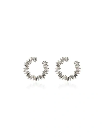 18kt White Gold And Diamond Hoop Earrings In Metallic