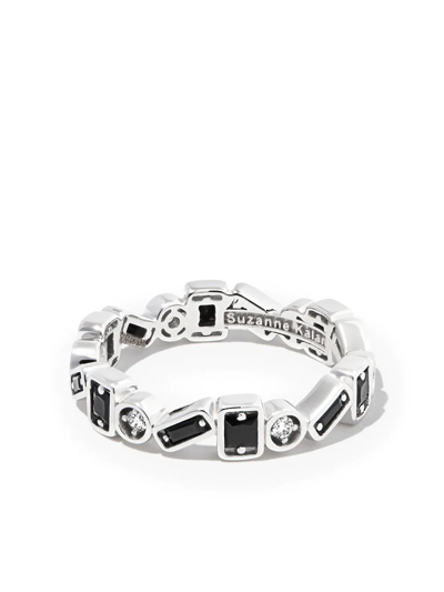 18k White Gold Black Sapphire Diamond Ring In Silver