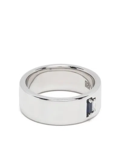 18kt White Gold Inlay Mini Sapphire Ring In Silver