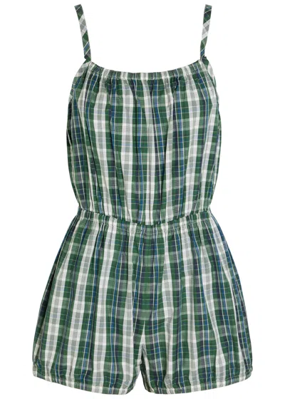 Dassia Checked Cotton-poplin Romper In Green