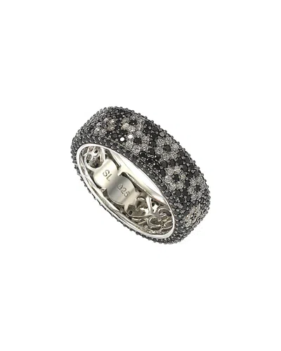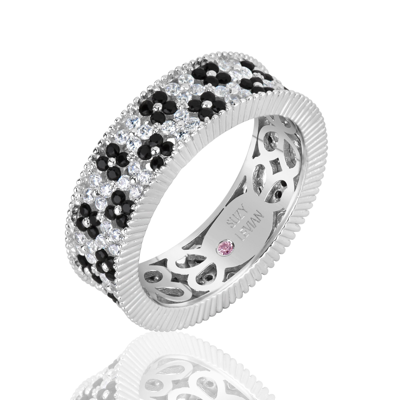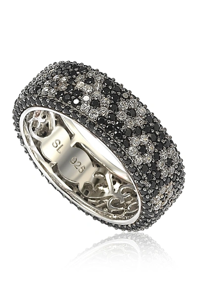 Sterling Silver Black And White Cubic Zirconia Floral Eternity Band