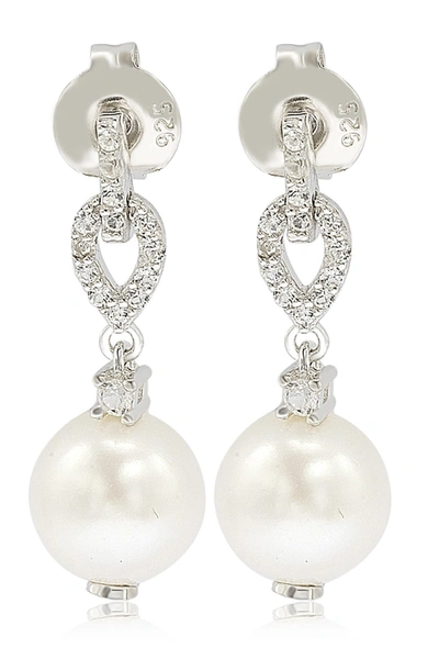 Sterling Silver 8mm Freshwater Pearl & Created Sapphire Dangle Earrings In White