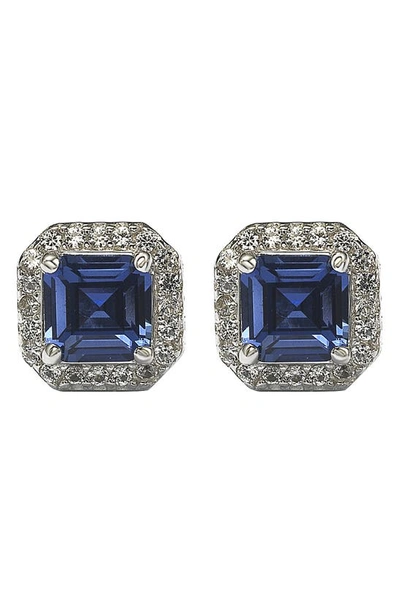 Sterling Silver Assher Cut Yellow Sapphire Halo Stud Earrings In Blue