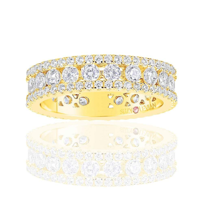Golden Sterling Silver Cubic Zirconia White Three Row Modern Eternity Band In Yellow