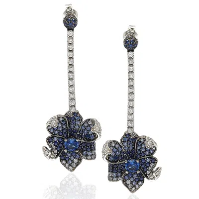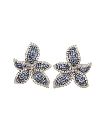 Floral Sterling Silver White Sapphire Blue Sapphire Brown Diamond Stud Earrings