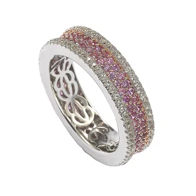 Sterling Silver Pink Sapphire And Diamond Accent Eternity Pave Ring In Purple