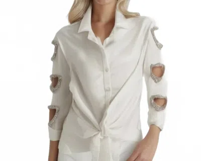 Heart Cut Out Button Down Blouse Sparkle With Crystals In White