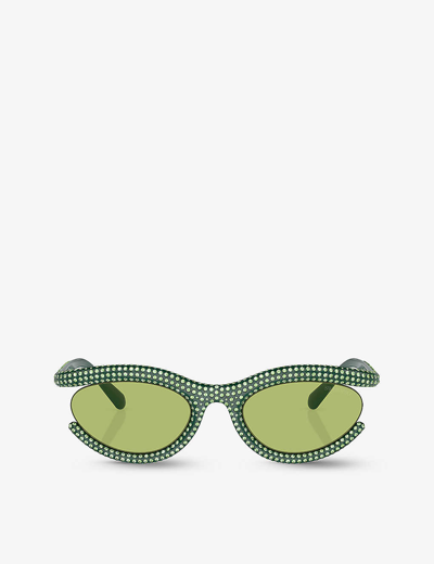 Womens Sk6006 Crystal-embellished Oval-frame Metal Sunglasses Green In Light Green Flash Silver
