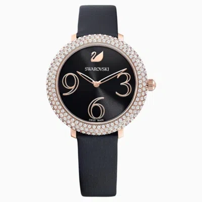 Pre-owned Crystalline Glam Watch Leather Strap, Black, Rose Gold-tone -5452452
