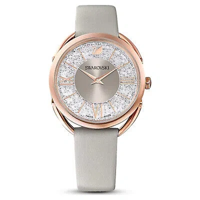 Pre-owned Crystalline Glam Watch Leather Strap, Gray, Rose Gold-tone -5452455