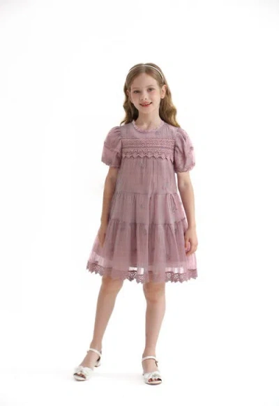 Kids' Lace-bow Top With Tiered Skirt In Gray