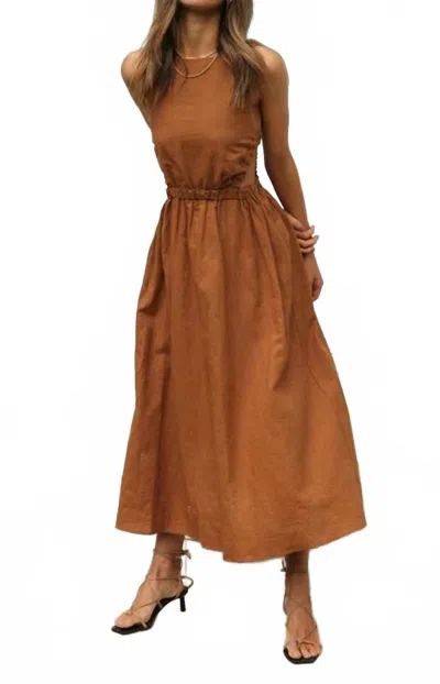 Elastic Strape Back Sleeveless Midi Dress In Brown