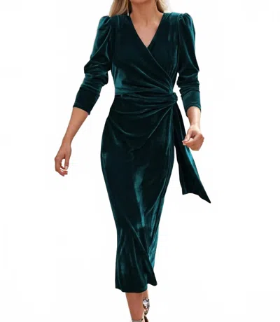 Waist Tie Velvet Long Dress In Green