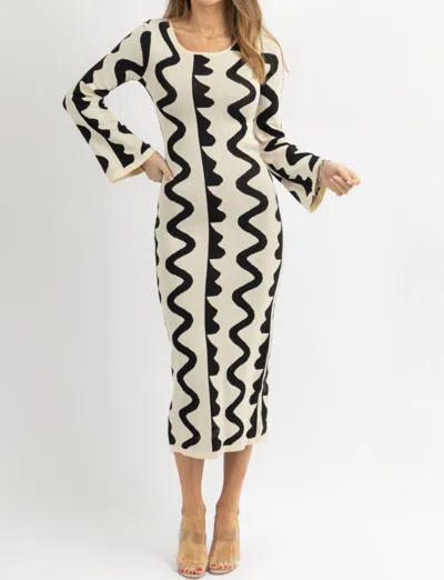 Wavy Knit Dress In Black/cream