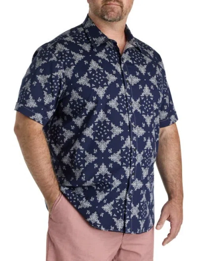 Big & Tall Microfiber Geometric Print Sport Shirt In Blue