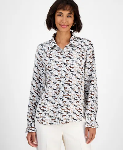 Women's Printed Tie-neck Long-sleeve Blouse In Brown