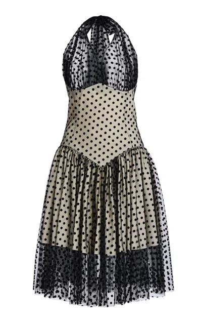 Volume Polka-dot Mesh And Lace Midi Skirt In Multi