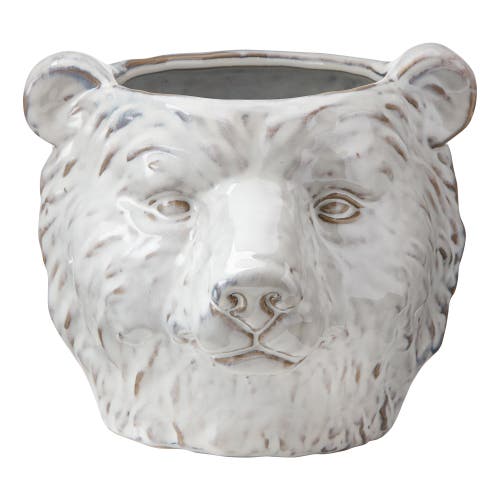 Ceramic Bear Planter White Garden Pot For Indoor Outdoor Use