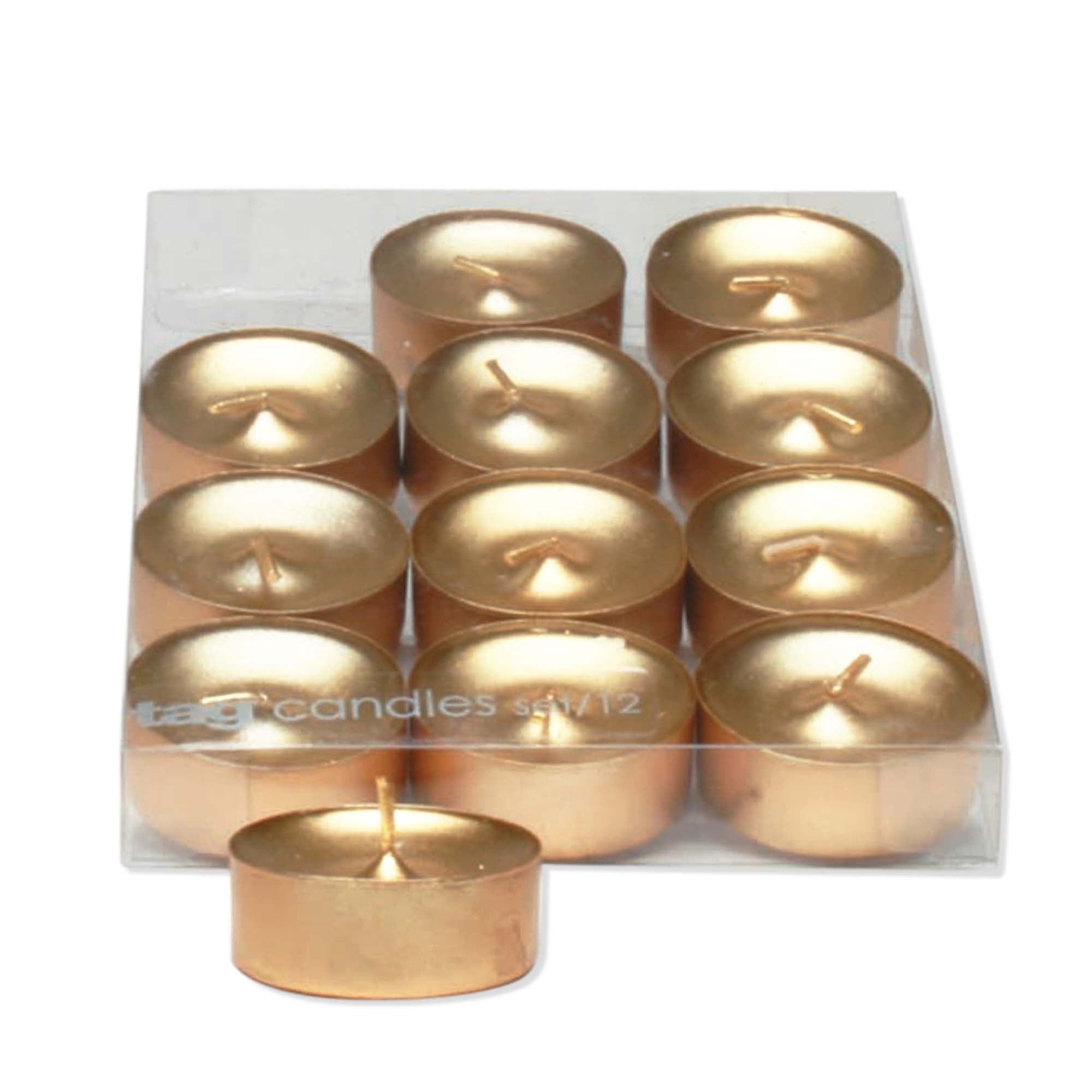 Shimmer Metallic Tealight Candles Set Of Twelve Gold Lights