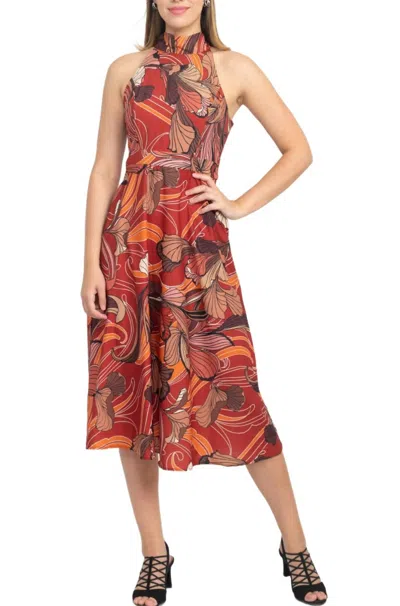 Women's Halter Tie Neck Sleeveless Print Dress In Caper Multi