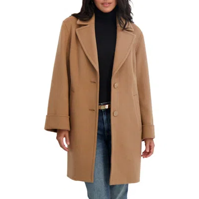 Women's Relaxed Double-faced Soft Wool Topper Coat With Front Buttons, Camel In Brown