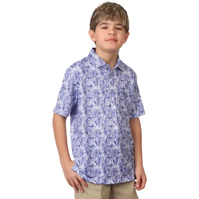 Kids' Stenciled Leaves Print Performance Knit Polo In Blue