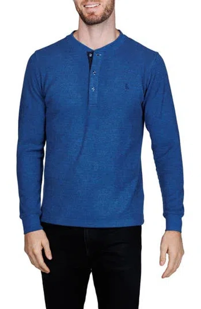 Cozy Waffle Knit Long Sleeve Henley In Blue