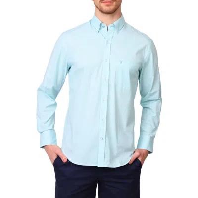 Micro Gingham Stretch Cotton Button-up Shirt In Seafoam