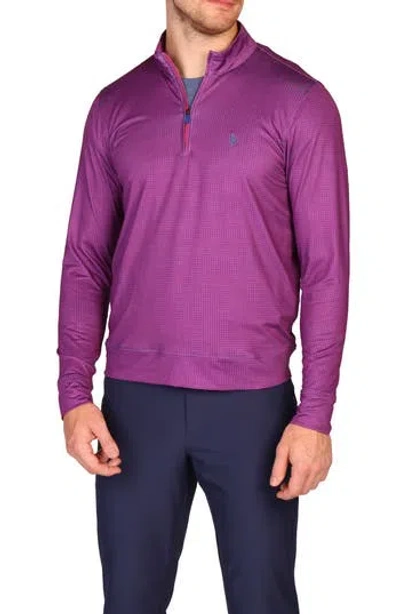Mini Houndstooth Print Long Sleeve Performance Quarter Zip Polo In Purple