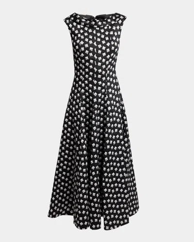 Ravioli Jacquard Sleeveless A-line Midi Dress In Black