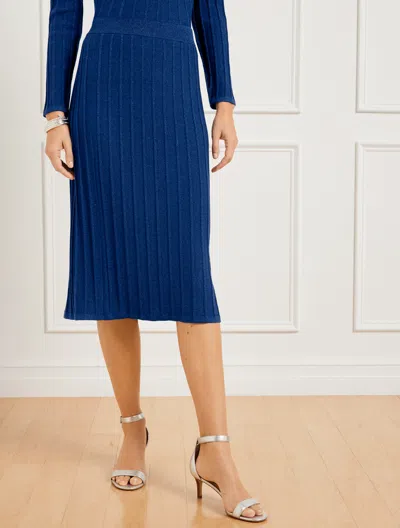 Petite - Metallic Ribbed Midi Sweater Skirt - Radiant Sapphire - Xl
