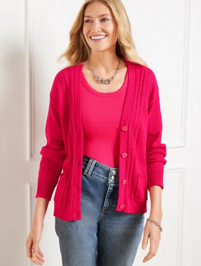 Plus Petite - Cable Knit V-neck Cardigan Sweater - Bright Rose - 3x In Pink