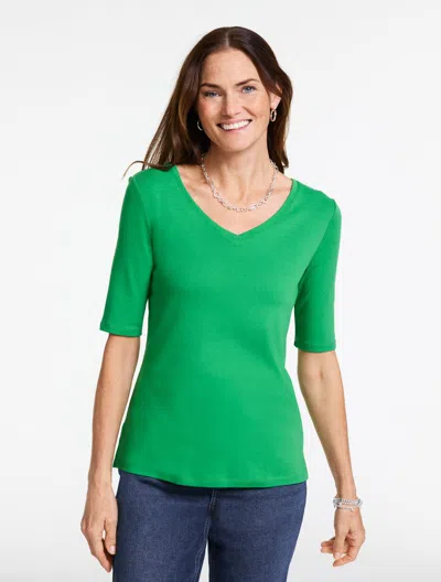 Plus Petite - Pima V-neck T-shirt - Hillside Green - 3x - 100% Cotton