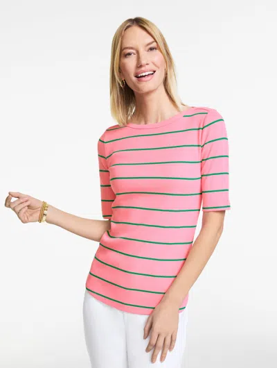 Plus Petite - Ribbed Bateau Neck T-shirt - Lagoon Stripe - Pink Guava/hillside Green - X