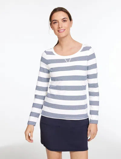 Plus Petite - Supersoft Jersey Long Sleeve T-shirt - Birdie Stripe - White/indigo - 1x In Multi