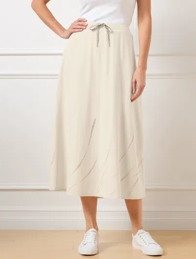 Plus Size - Lightweight Woven Stretch Midi Skirt - Laser Cut - Oat - 3x In Neutral